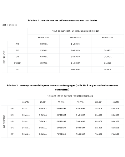 - Choisissez d'abord votre profondeur de bonnet. Ensuite déterminez votre tour de buste (sous la poitrine)
