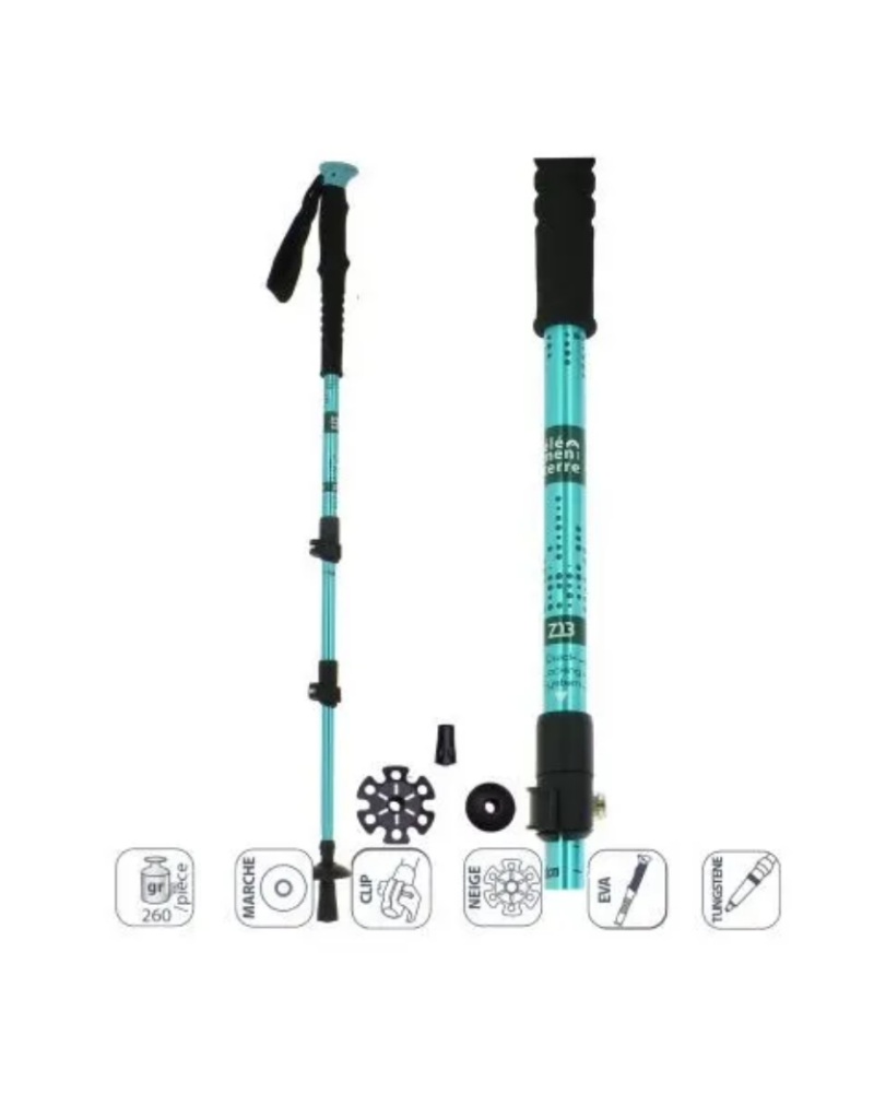 Le bâton de marche / randonnée "HOBO" de la marque ELEMENTERRE est compact quand on ne l'utilise pas grâce à ses 3 sections en auminium. Son système d'ouverture par clip est très simple...