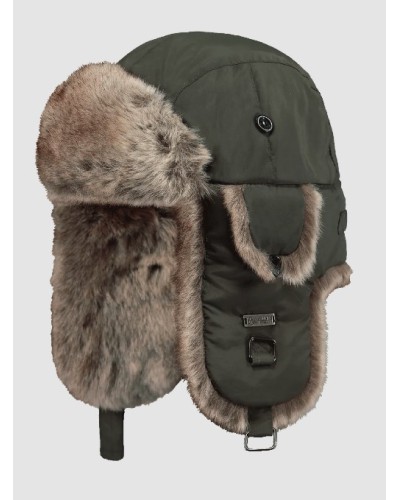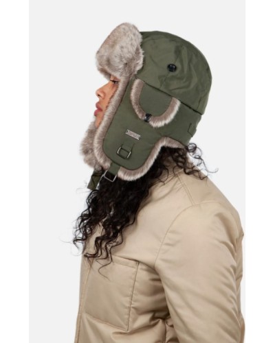 La Chapka Adulte "Kamikaze" de la marque BARTS doté d'une fausse fourrure douce et chaude et d'une doublure en polyamide. Les oreillettes peuvent être fixées sous le menton et sur le dessus du chapeau. À l'intérieur se trouve une sangle réglable à l'arrière pour une plage d'ajustement plus large.