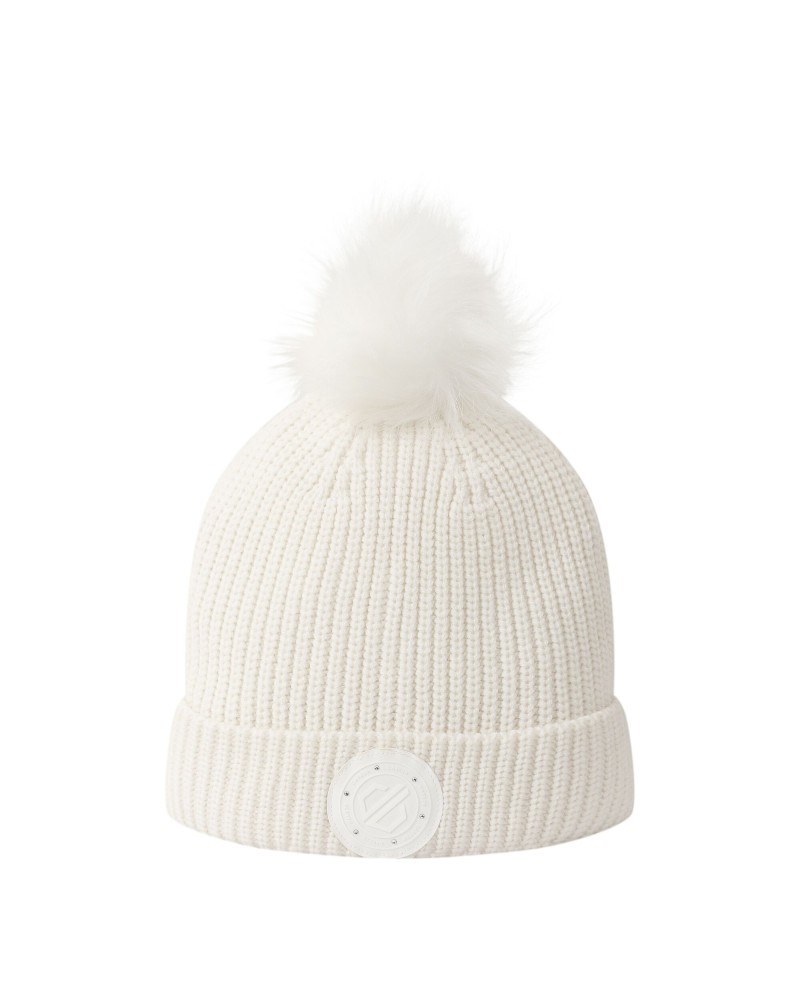 Restez bien au chaud avec le bonnet à pompon pour femme ""SWAROVSKI Knit Hat Glitz Beanie" de la marque DARE 2B. Fabriqué dans un mélange de polyester recyclé et d'élasthanne, ce bonnet côtelé présente un pompon en fausse fourrure, un revers roulé et un badge Swarovski pour une touche d'éclat.