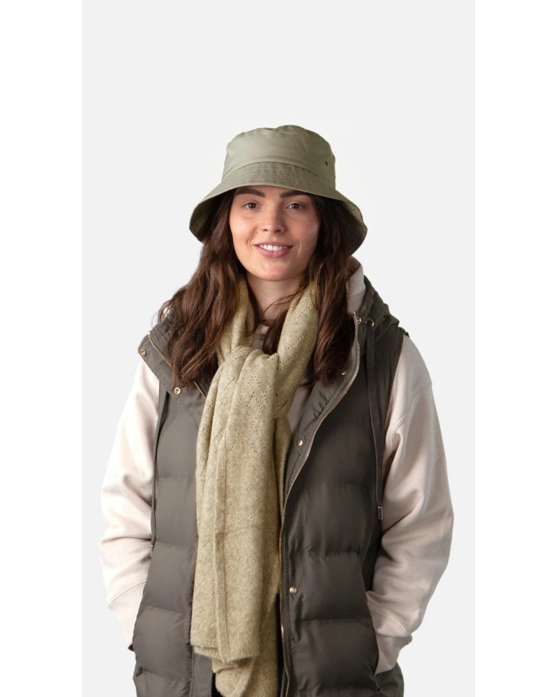 Le chapeau "Allectra Hat" de la marque BARTS est un chapeau résistant à l'eau avec un système d'ajustement réglable pour un ajustement parfait. La doublure sur la partie supérieure du chapeau est en fausse fourrure et garde la tête au chaud. Le chapeau est composé à 100 % de polyester et la longueur du bord est de 7 cm.