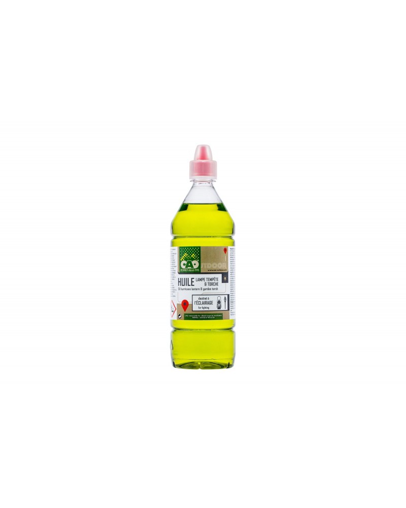 De qualité et 100% de composition naturelle, l'avantage de cette huile est que sa combustion se fait sans dégager dans l'atmosphère des mauvaises odeurs. Equipement CAO de qualité, l'huile convient pour les lanternes et lampes à huile/pétrole. La bouteille de 1 litre est doté d'une bouchon sécurité facilitant le remplissage des réservoirs.